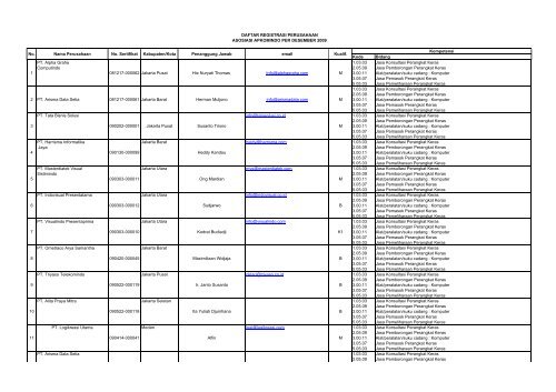 DAFTAR REGISTRASI PERUSAHAAN ASOSIASI APKOMINDO .3.00.11 Alat/peralatan/suku cadang : Komputer 3.05.07 - [PDF Document]
