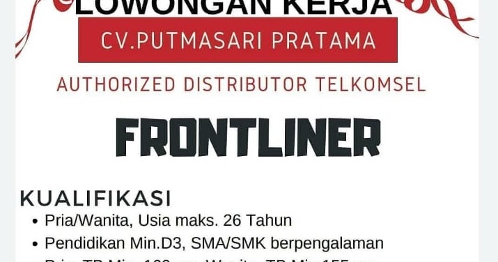 DISNAKERTRANS - Lowongan Kerja di CV. Putmasari Pratama Autorized Distributor Telkomsel di Wates