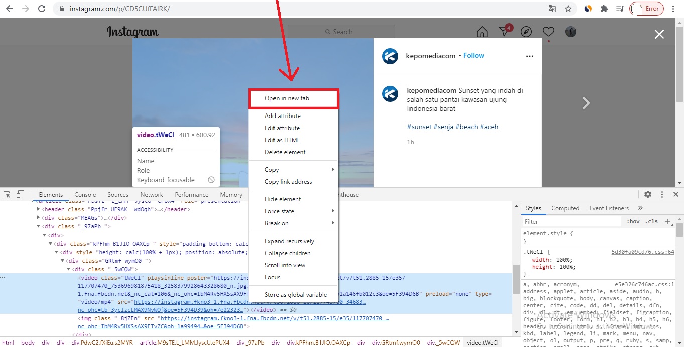 Cara Menyimpan (save as) Foto Instagram di PC Tanpa Aplikasi