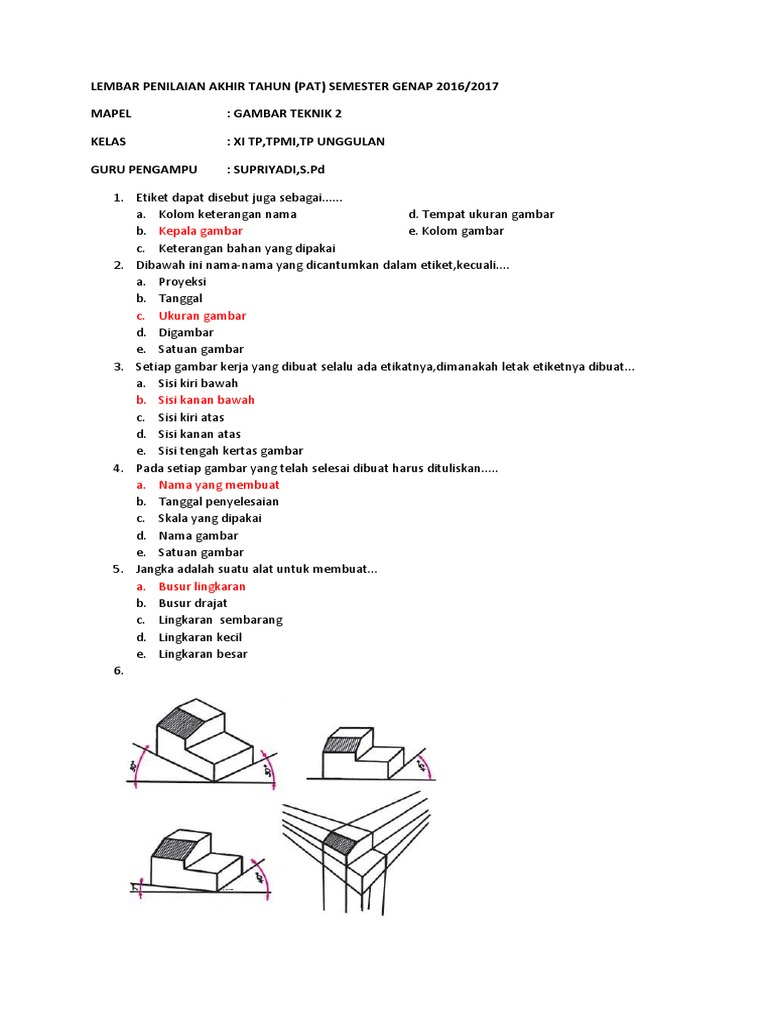 Soal Gambar Teknik Smk Kelas X - Guru Ilmu Sosial