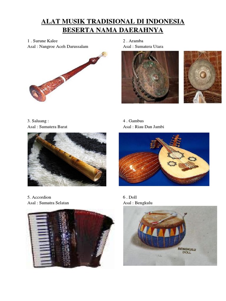 DOC) Alat musik tradisional : Serune Kale 2. Alat musik tradisional : Aramba 3. Alat musik tradisional: Saluang 4. Alat musik tradisional : Gambus 5. Alat musik tradisional : Serangko 6. Alat musik tradisional : Accordion | Ramu Parera - Academia.edu
