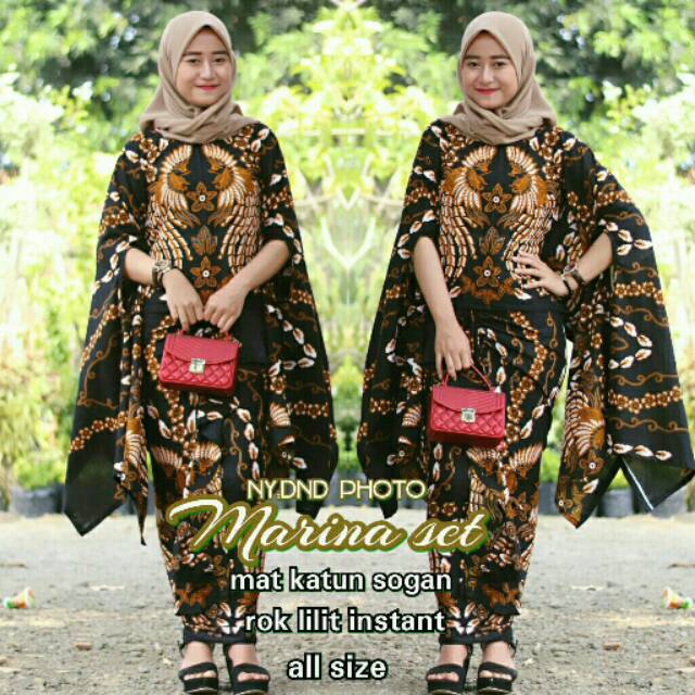 Baju Batik HRB026 Setelan Batik Atas Bawah Rok Lilit Instan All Size Atasan Kelelawar | Shopee Indonesia