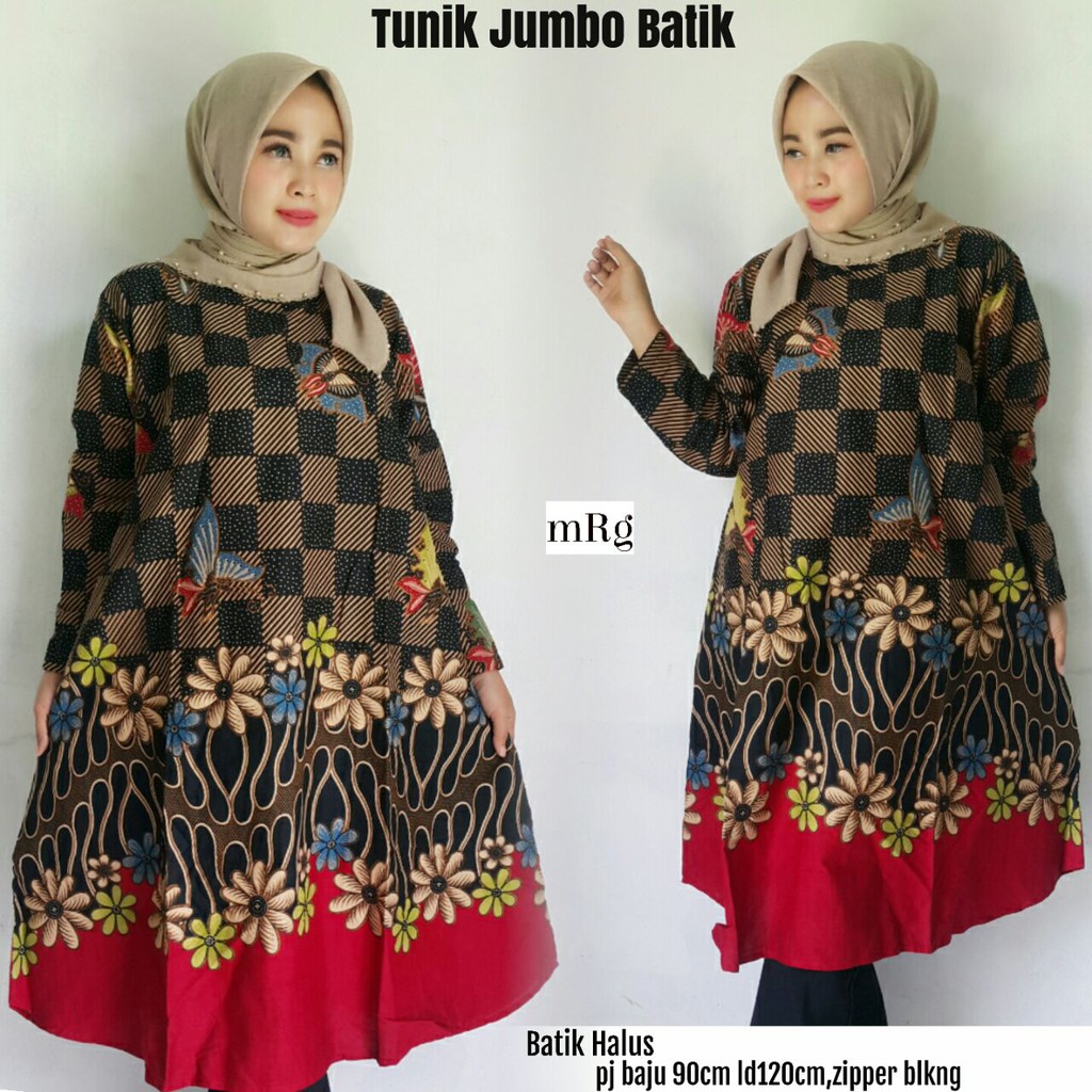 BUSANA BATIK MUSLIM JUMBO,TUNIK BATIK BIG SIZE,BATIK TUNIK MODERN SOLO | Shopee Indonesia