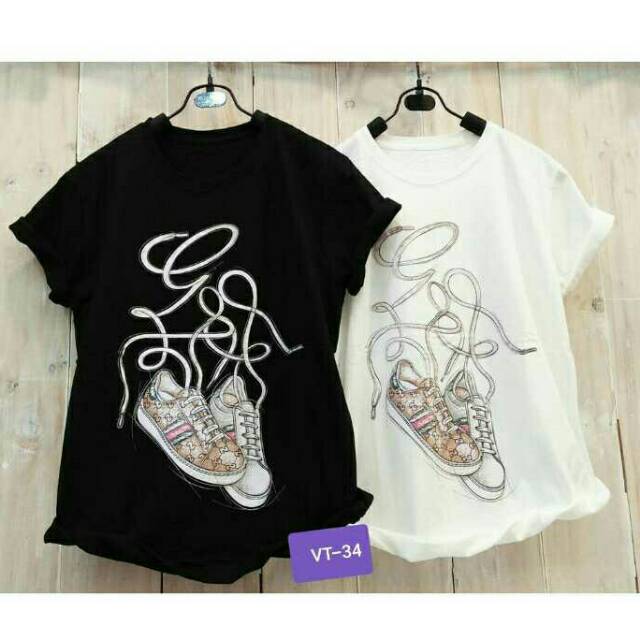 Baju cewe t-shirt cantik gambar sepatu #KS | Shopee Indonesia