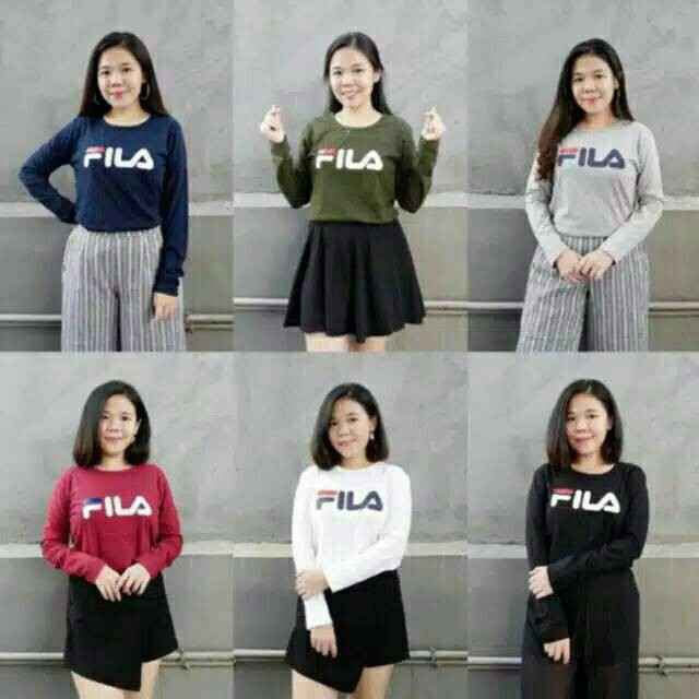 kaos cewe lengan panjang baju cewe kaos wanita baju wanita tshirt tee fila LP Limited | Shopee Indonesia