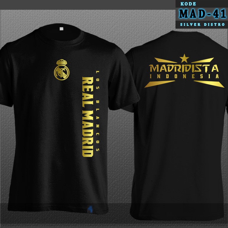 Kaos Real Madrid MAD-41 Madridista Indonesia Hitam Gold Depan Belakang Baju Distro | Shopee Indonesia