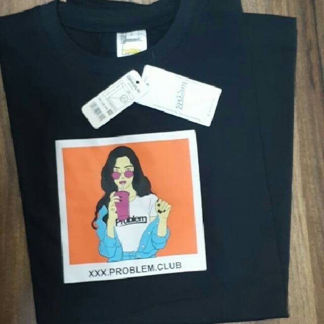 Promo pakaian kaos distro problem baju lengan pendek warna hitam gambar wanita minum (unisex) | Shopee Indonesia