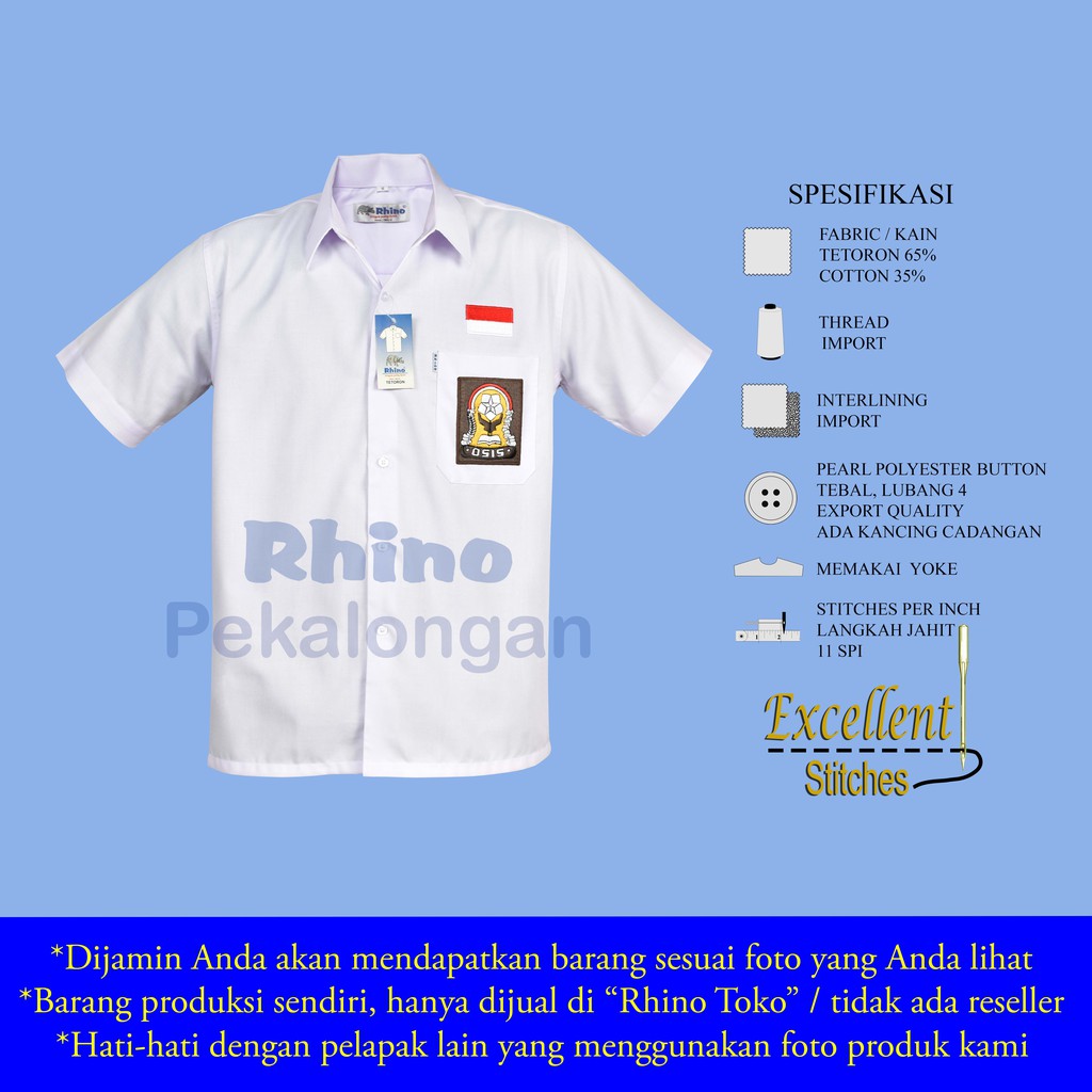 Jual Rhino Sablon Tetoron Baju Putih Pendek OSIS SMA Seragam Sekolah Online Oktober 2020 | Blibli.com