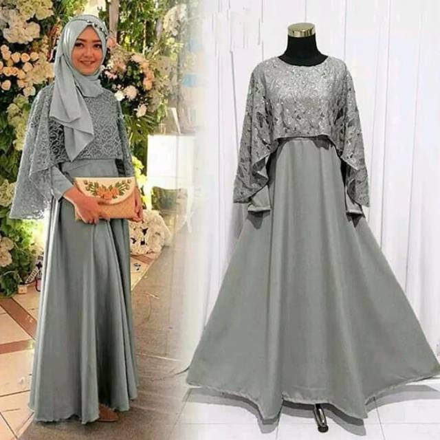gamis muslim wanita muslimah syari gaun pesta kekinian baju pesta meyrani kondangan cape brukat long dress premium terbaru - Busana Muslim Wanita » Baju Muslim & Perlengkapan Sholat » Fashion Wanita -