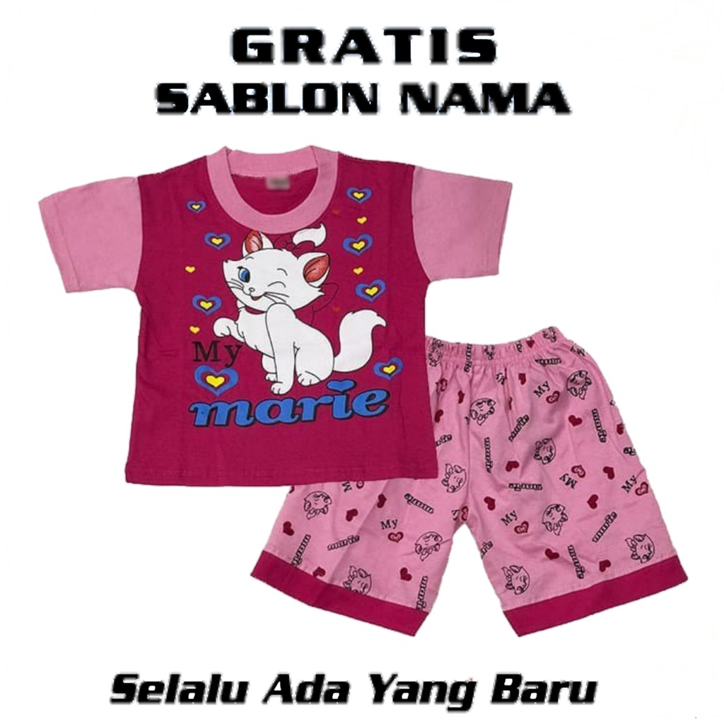 Baju Setelan Anak Perempuan Pink Gambar Marie Cat Gratis Sablon Nama | Shopee Indonesia