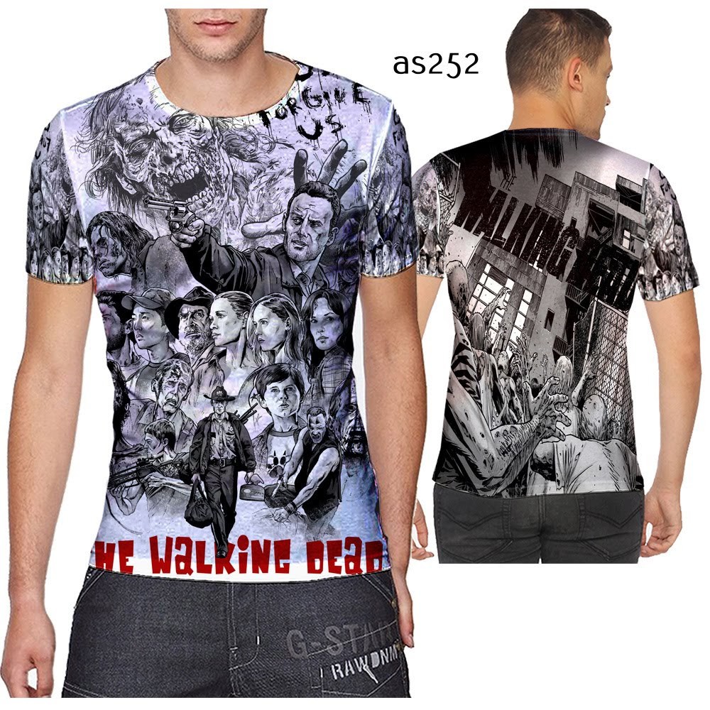 Baju Kaos Pria Tangan Pendek Full Print Printing The Walking Dead V5 - Bisa Custom Tulisan Gambar | Shopee Indonesia
