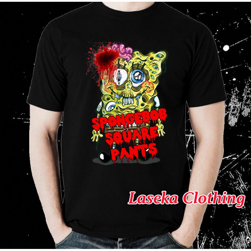 Kaos Distro Baju Murah Anime Film Kartun SPONGEBOB Sponge Bob Zombie Plesetan | Shopee Indonesia