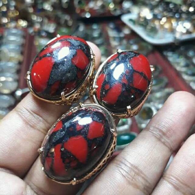 Batu cincin pirus merah urat merah mesir batu pirus batu cincin mesir | Shopee Indonesia