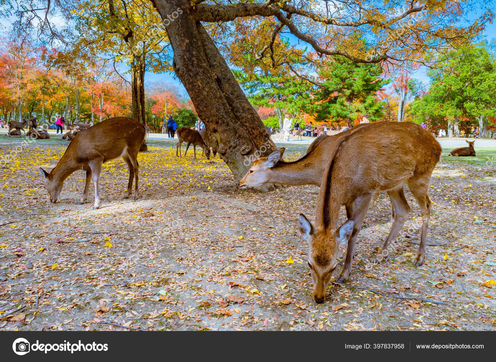 Jepang Taman Nara Deer Mencari Makanan Rusa Taman Nara Bergantung — Stok Foto © GrinPhoto #397837958