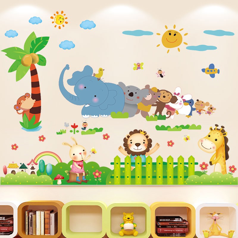 Stiker Dinding Desain Kartun Binatang Lucu untuk Kamar Anak | Shopee Indonesia