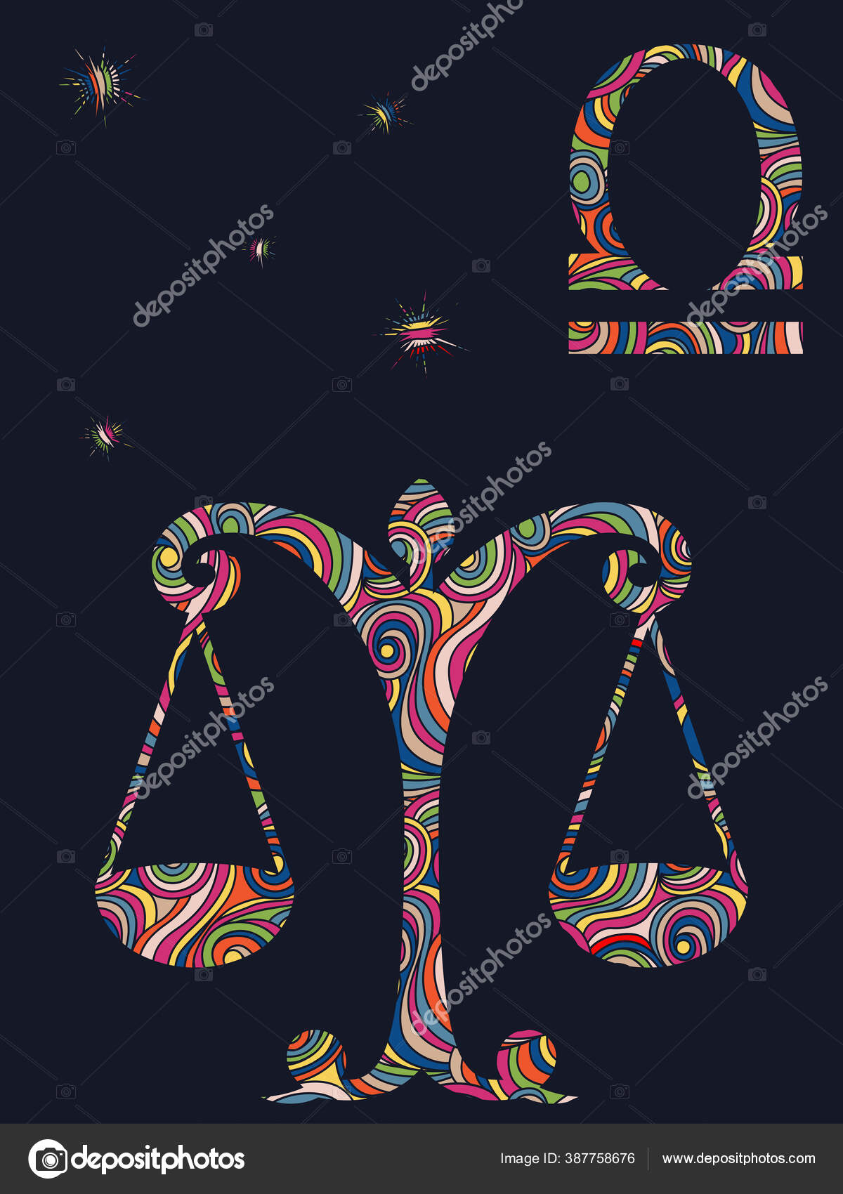 Tanda Zodiak Libra Diisi Dengan Warna Warni Bentuk Bergelombang Pada — Stok Vektor © natreal #387758676