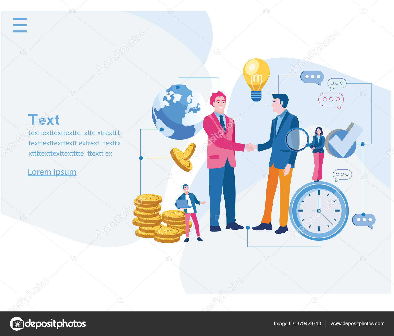 Gambar Vektor Kartun Dari Karyawan Berjabat Tangan Tim Dengan Koin — Stok Vektor © maxymova #379429710