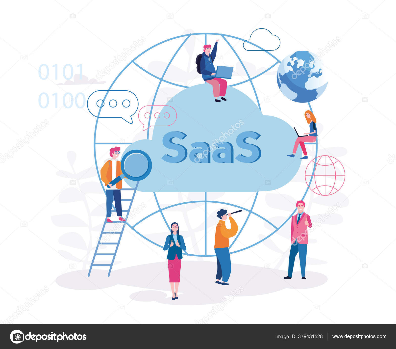 Gambar Vektor Kartun Dari Pekerja Saas Dengan Bola Dunia — Stok Vektor © maxymova #379431528