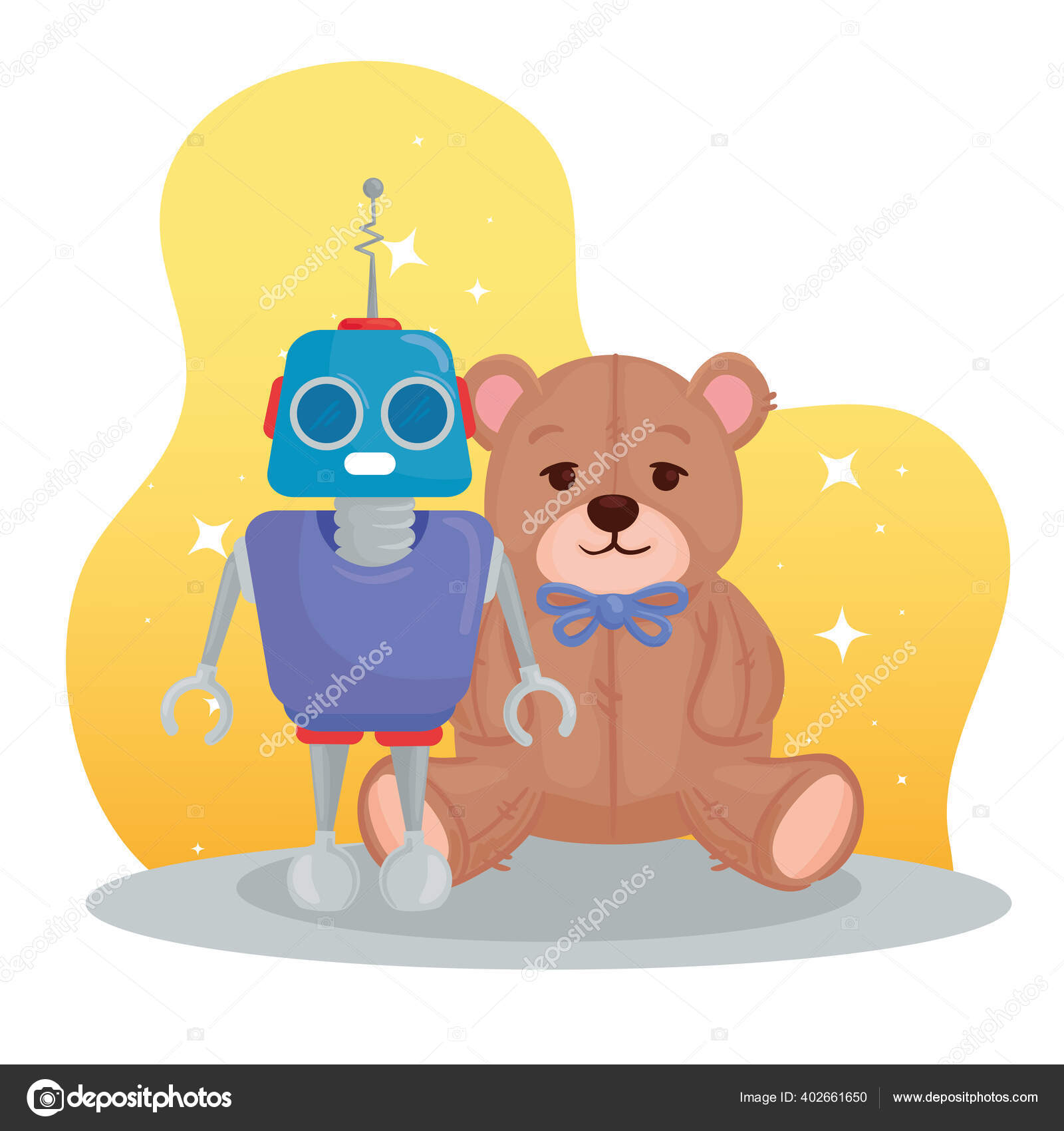 Mainan anak-anak, boneka beruang dan robot Stok Vektor © yupiramos #402661650