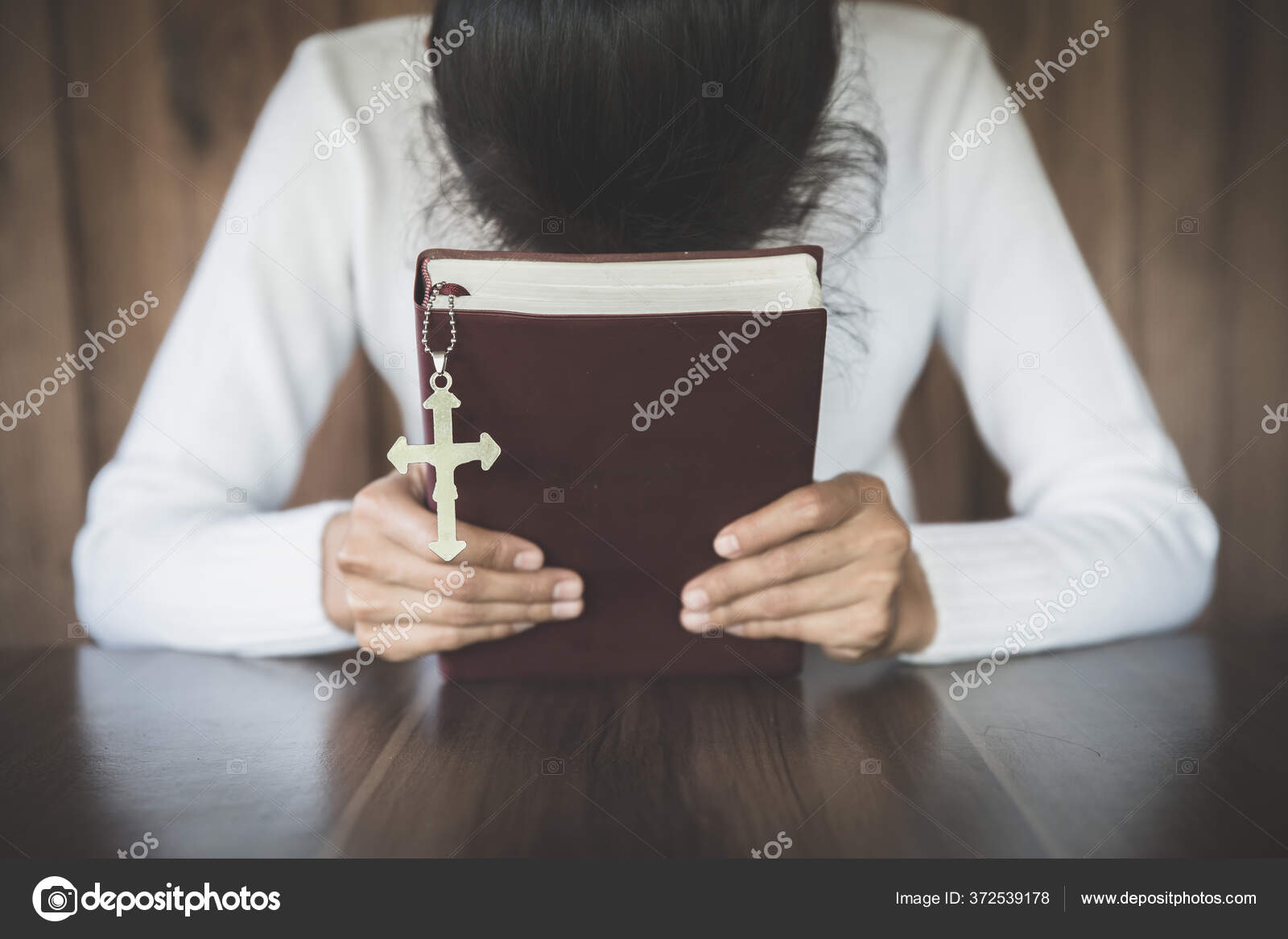 Seorang Wanita Muda Berdoa Dengan Telapak Tangan Terbalik Buku Buku — Stok Foto © kawfang.kanjana@gmail.com #372539178