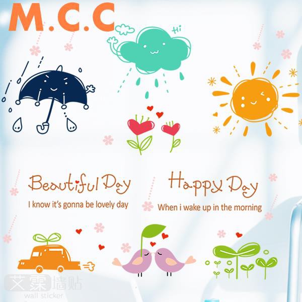 Stiker dinding dilepas, Awan matahari bunga TK kamar tidur kamar anak-anak, Ubin kamar mandi, Toilet | Shopee Indonesia