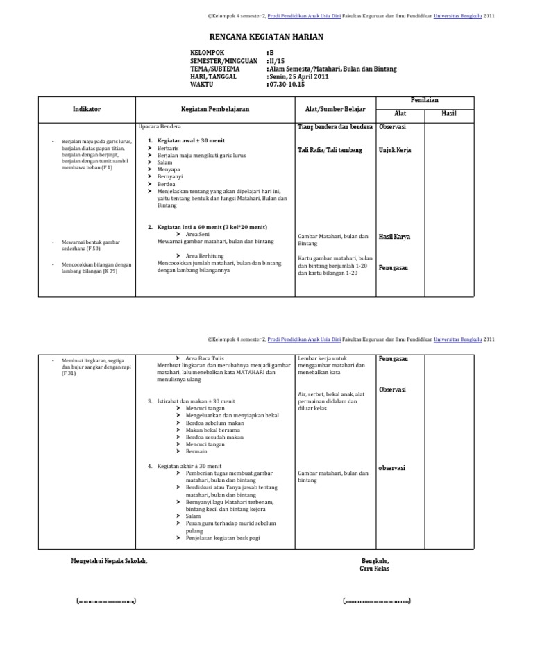 DOC) CONTOH RENCANA KEGIATAN HARIAN | Aini Mahmudah - Academia.edu
