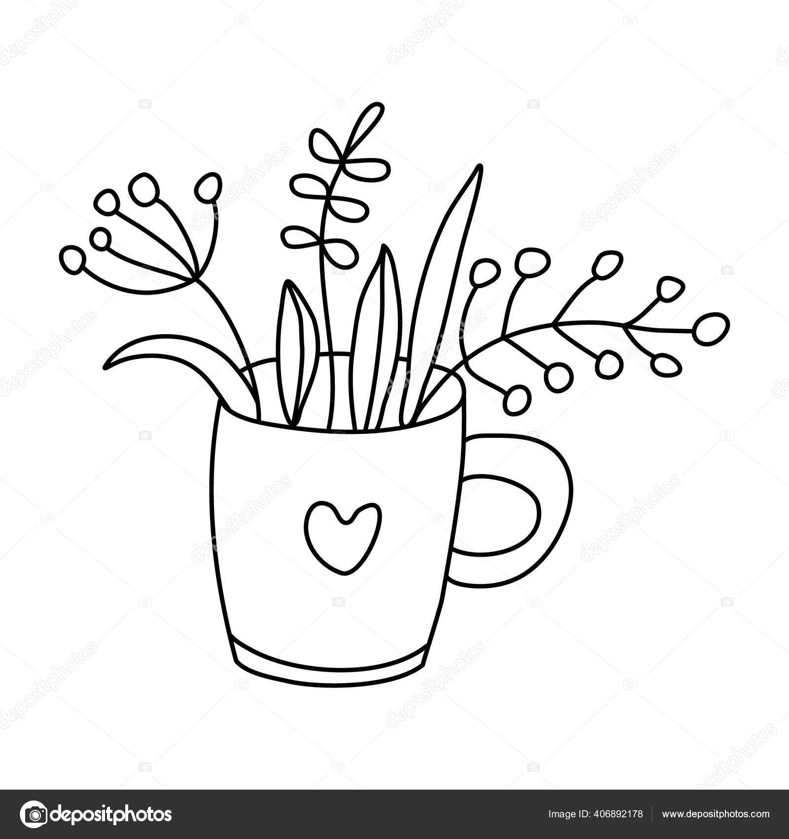 Daun Yang Bagus Dan Tumbuh Tumbuhan Dalam Cangkir Lucu Yang — Stok Vektor © DruzhAnia #406892178