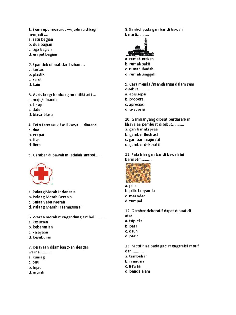 I. Berilah tanda silang (X) pada jawaban a, b,c dan d yang …· Motif hias pada kain biboki yang - [PDF Document]