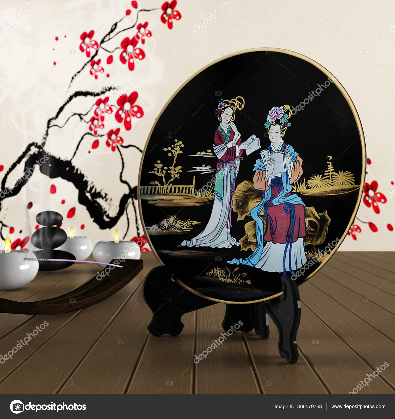 Unsur Dekorasi Interior Yang Terdiri Dari Piring Dekoratif Dengan Ilustrasi — Stok Foto © rambosaransk@mail.ru #360579768