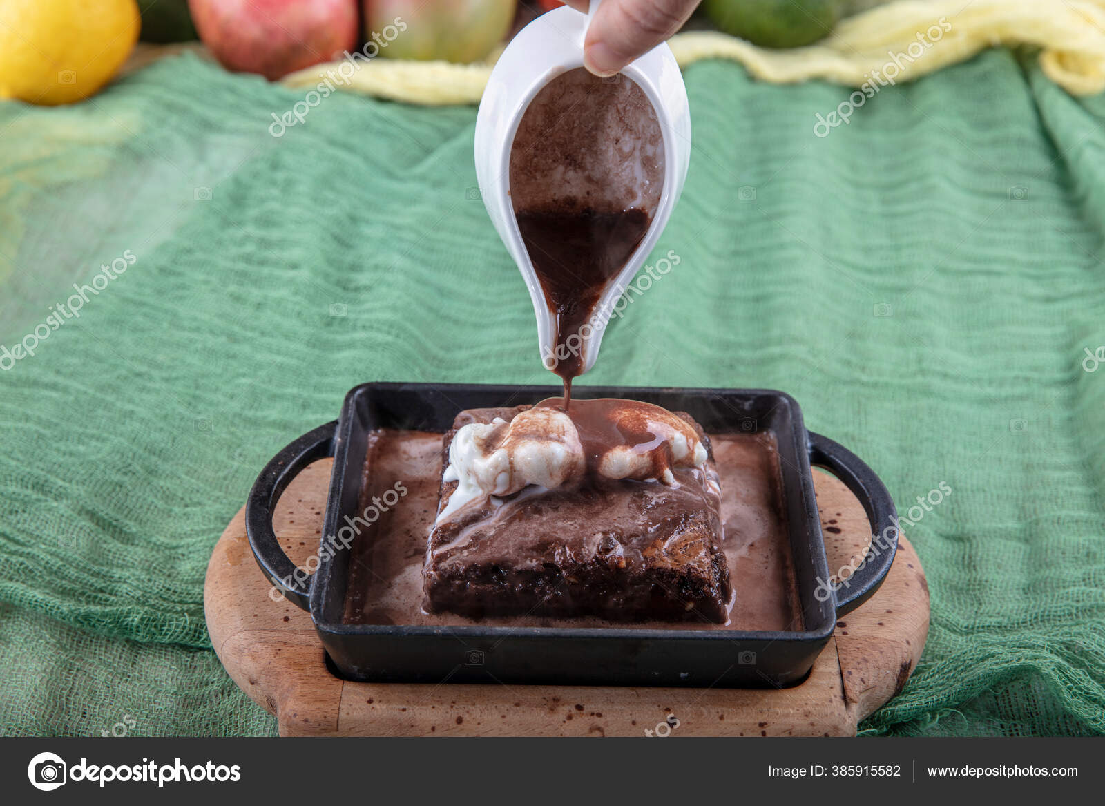 Brownies Coklat Sizzling Adalah Hidangan Manis Yang Dibuat Menggunakan Sendok — Stok Foto © mc.atolye #385915582