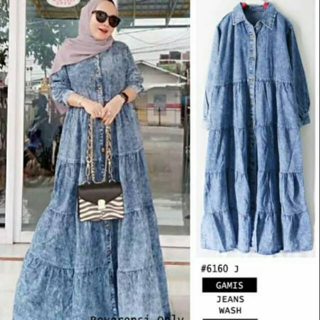 Baju Gamis Jeans Wash Gamis Levis - Model Hijab Terbaru