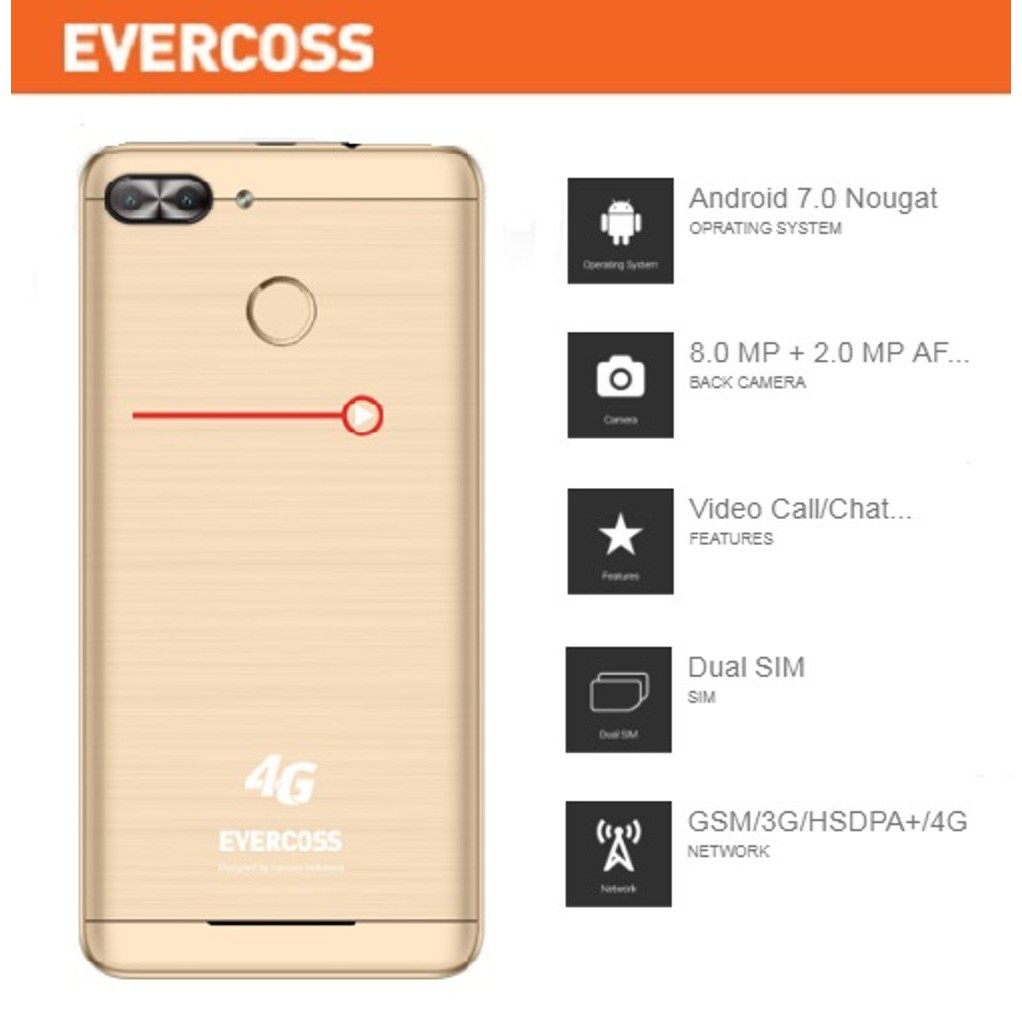 EVERCOSS U6 4G LTE XTREAM 1 PLUS RAM 1GB ROM 8GB HP CAMERA 8MP+2MP ANDROID 7.0 NOUGAT GARANSI RESMI | Lazada Indonesia