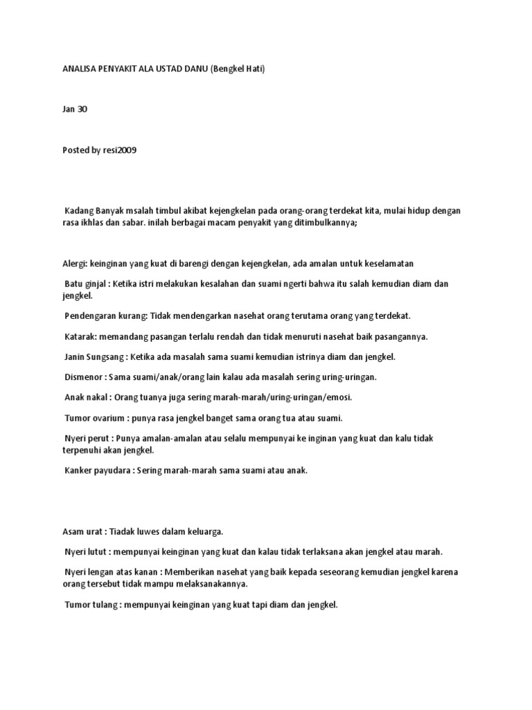 29 Penyakit Dan Penyebab Menurut Ustad Danu