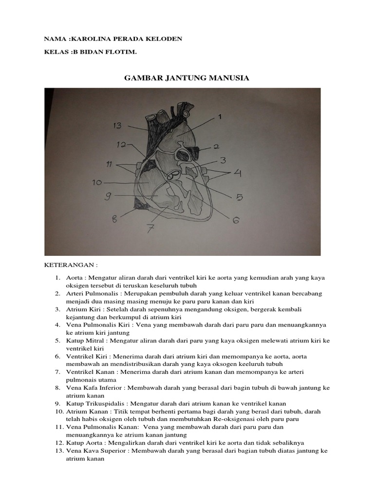 Gambar Jantung Manusia: Nama:Karolina Perada Keloden Kelas:B Bidan Flotim