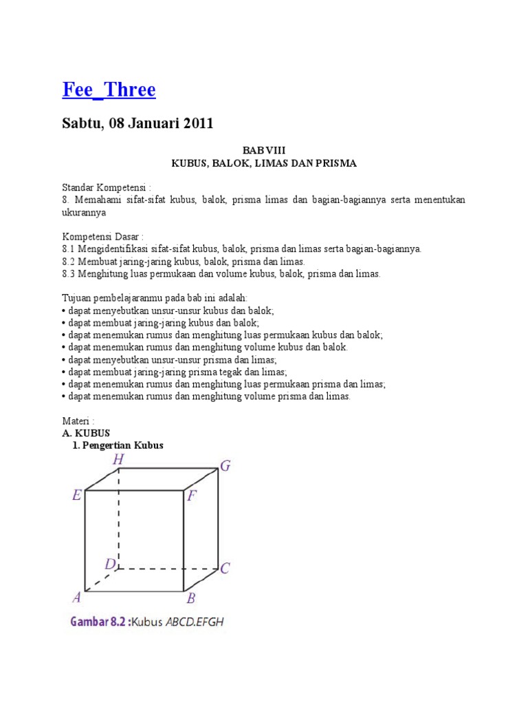 SMPN 269 Jakarta: MATEMATIKA KELAS 8: KUBUS DAN BALOK