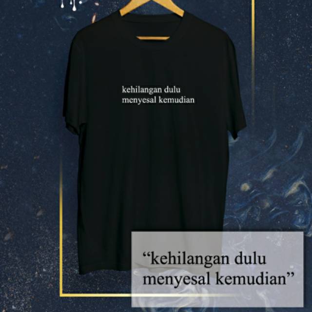 KAOS CONFIDE DISTRO COWOK CEWEK CUSTOM KATA-KATA KEHILANGAN DULU MENYESAL KEMUDIAN | Shopee Indonesia