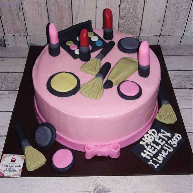 Kue ulang tahun makeup make up dandan lipstik cake ultah buttercream dekor fondant | Shopee Indonesia