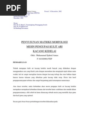 PDF) PENERAPAN ILMU PENGETAHUAN DAN TEKNOLOGI MESIN PENGUPAS KULIT ARI KEDELAI JENIS SCREW PADA INDUSTRI KECIL TEMPE