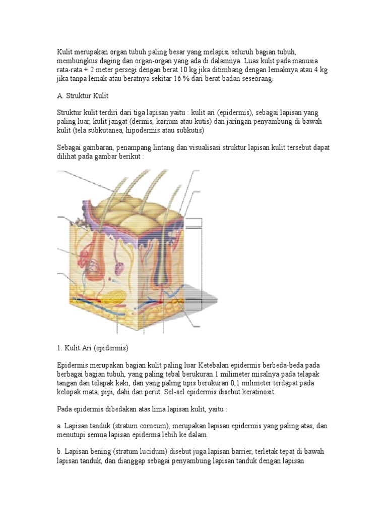 3 Lapisan Struktur Kulit : Kulit Ari (Epidermis), Kulit Jangat (Dermis, Korium atau Kutis), dan Jaringan Penyambung (Jaringan Ikat) Bawah Kulit (Tela Subkutanea, Hipodermis atau Subkutis) - PINTU BELAJAR CERDAS (PBC)