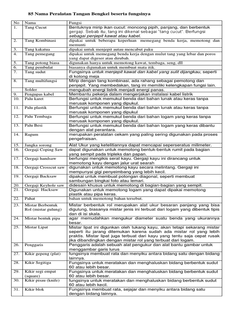 85 Nama Peralatan Tangan Bengkel beserta fungsinya.pdf