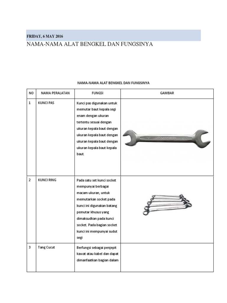 Nama Alat-Alat Bengkel Otomotif: Fungsi dan Gambarnya | Widiyanata Blog