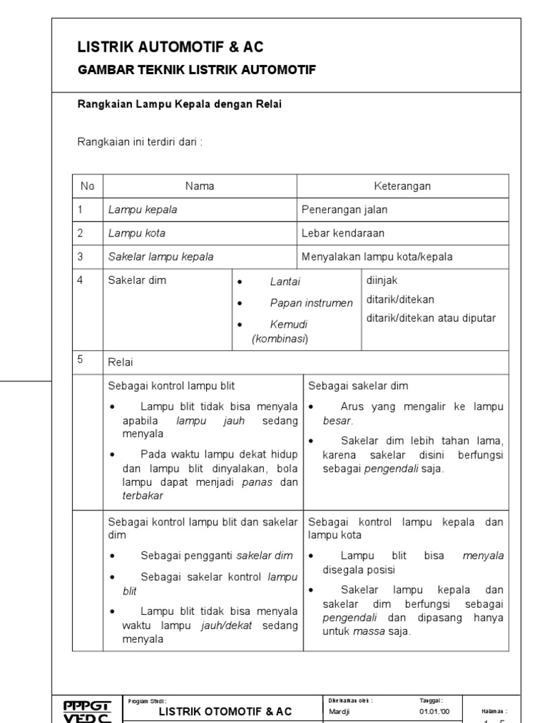 Gambar skema rangkaian lampu kepala beserta komponennya