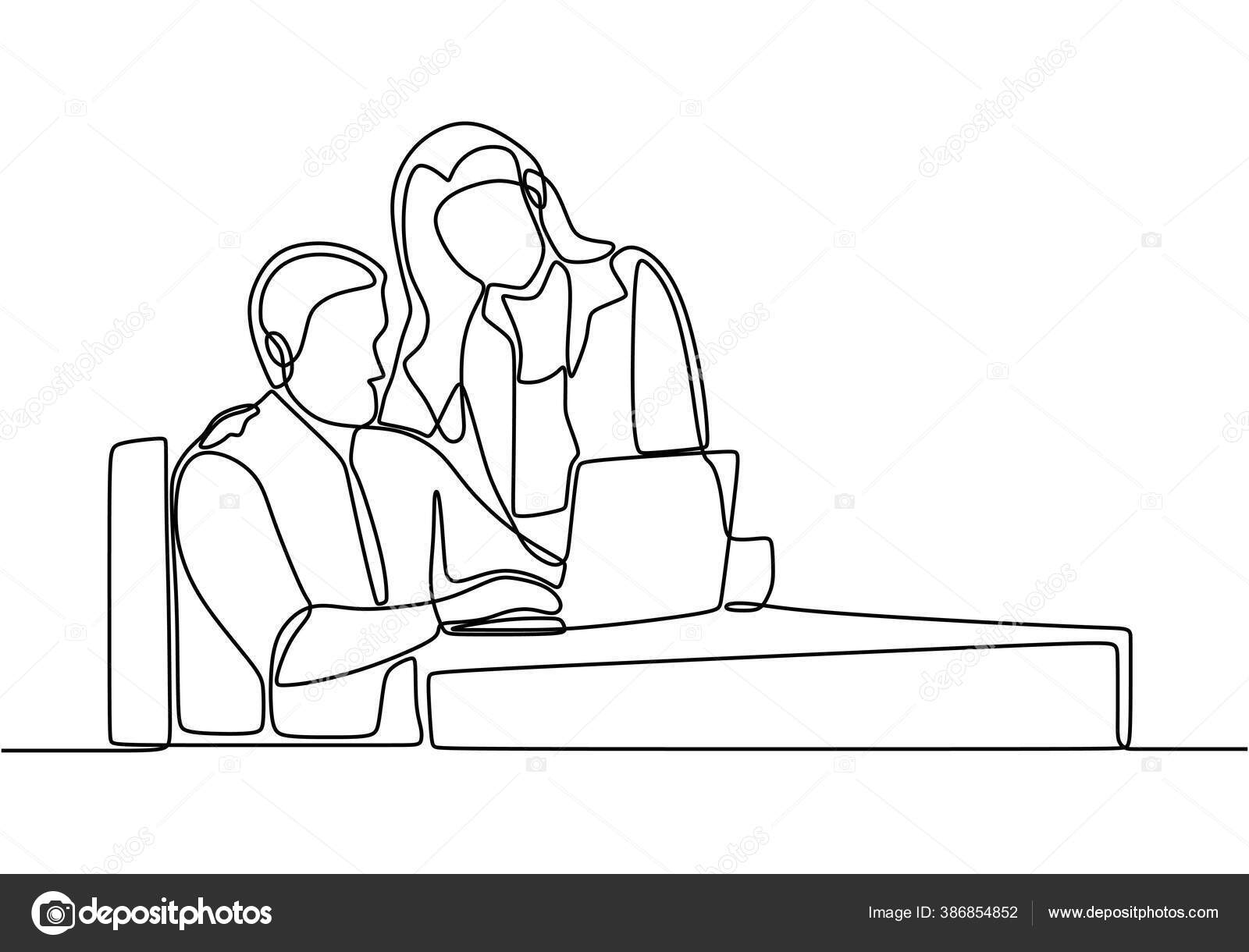 Garis Berkelanjutan Gambar Rekan Kerja Menonton Komputer Laptop Bersama Sama — Stok Vektor © ngupakarti #386854852