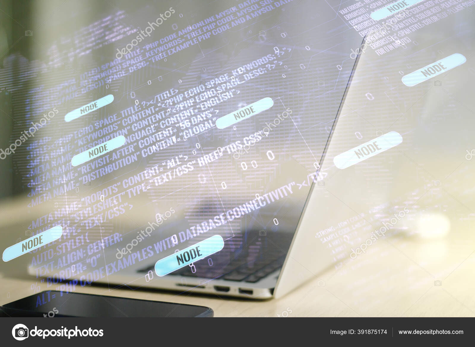 Paparan multi dari sketsa coding kreatif abstrak dengan peta dunia pada latar belakang laptop modern, kecerdasan buatan dan konsep jaringan saraf — Stok Foto © PixelsHunter #391875174