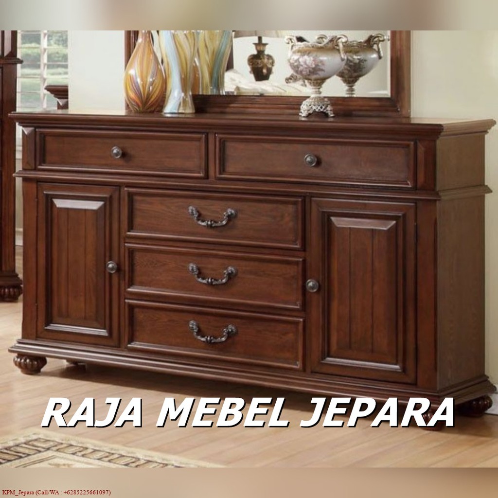 bufet minimalis klasik kayu jati asli, furniture jepara | Shopee Indonesia