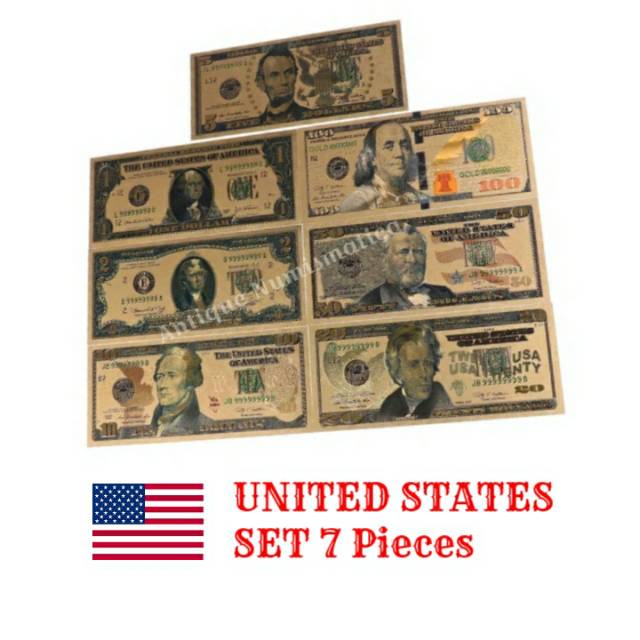 GOLD FOIL UNITED STATES SET 7 Pcs BERWARNA TEBAL UANG AMERIKA SERIKAT SOUVENIR DOLLARS AMERICA | Shopee Indonesia