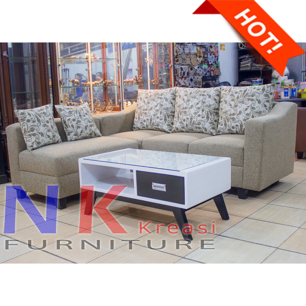 Sofa Kursi Ruang Tamu L sudut ELEGAN Minimalis mewah + MEJA CANTIK FREE ONGKIR - JABODETABEK ONLY | Lazada Indonesia
