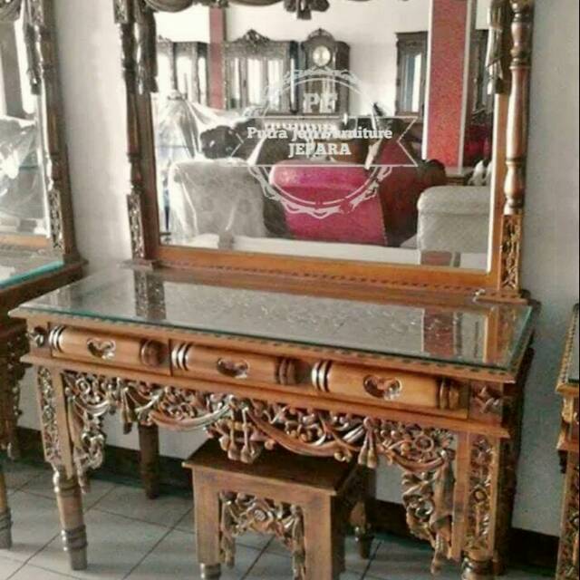 Cermin Meja Full Ukiran, Meja Rias Tolet Kayu Jati Jepara Free Ongkir | Shopee Indonesia