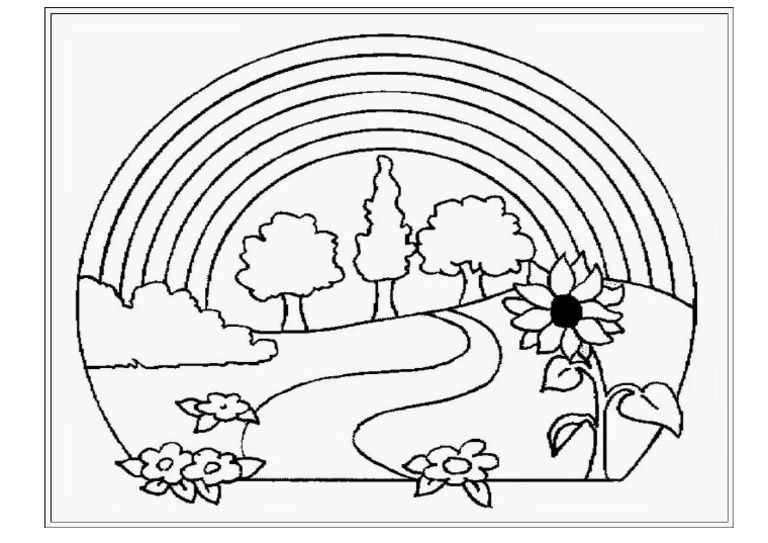 Gambar Mewarnai Pemandangan Pelangi - Contoh Gambar Mewarnai
