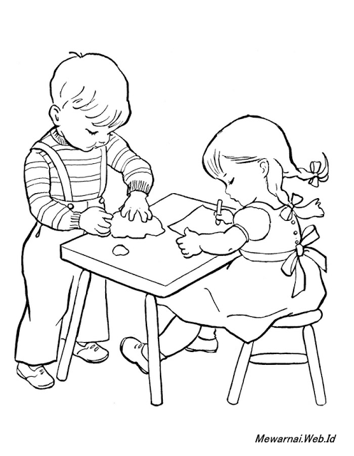 Gambar Mewarnai Anak - Anak Sedang Belajar | Dunia Mewarnai